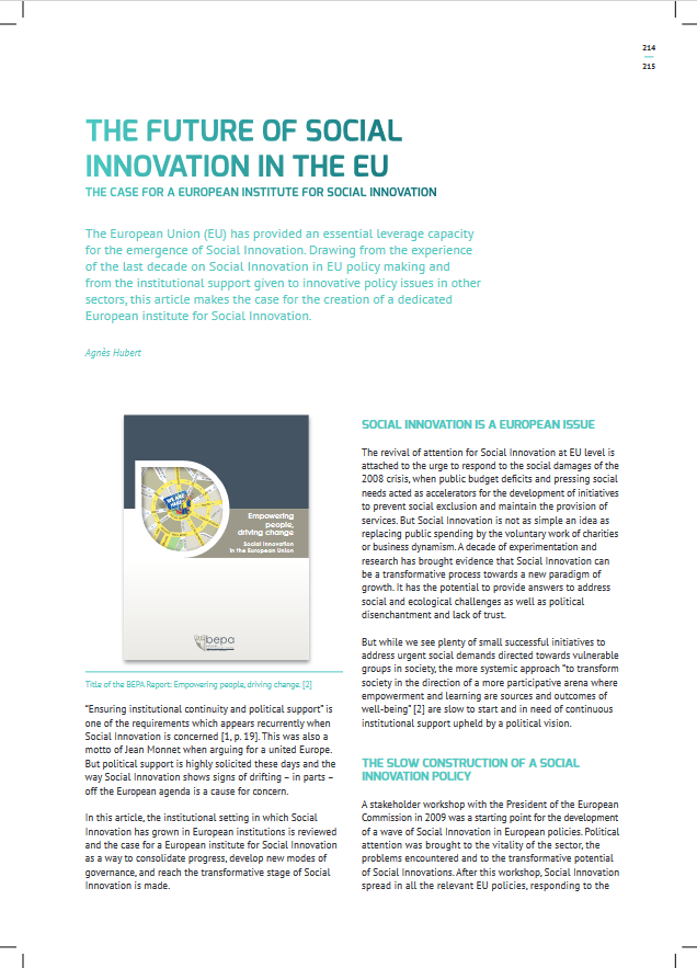| link The Future of Social Inovation in the EU: The Case for a European Institute for social innovation |