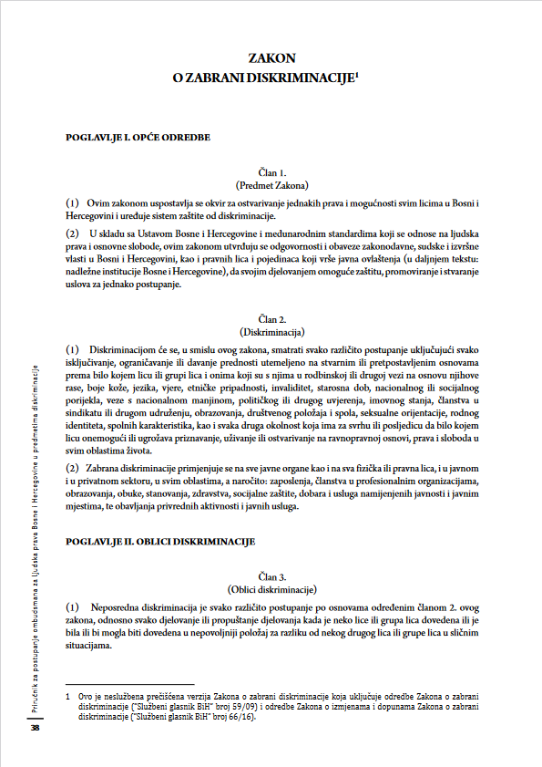 | link Vodič za primjenu izmijenjenog i dopunjenog Zakona o zabrani diskriminacije u BiH |